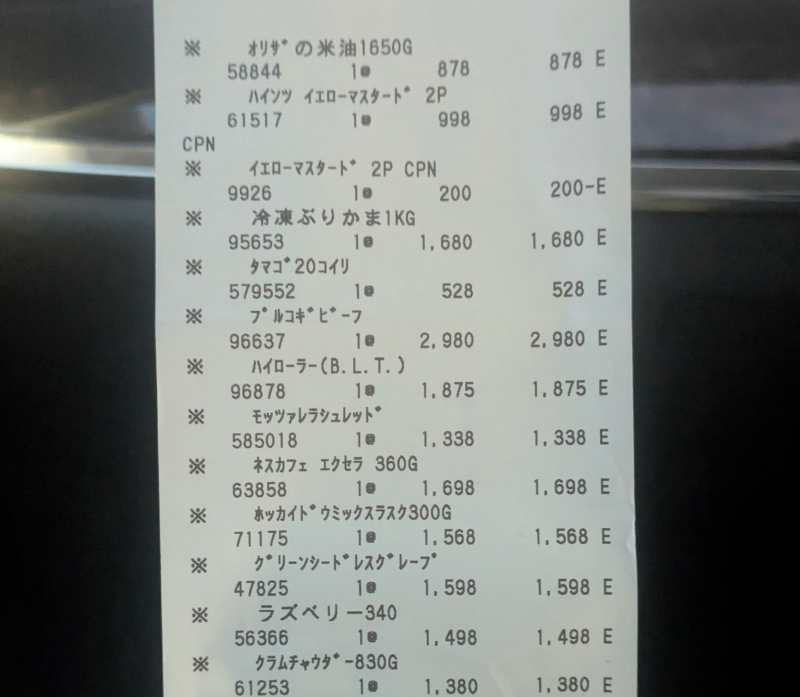 それから、ラスク、マスタード(試食で釣られた)、こめ油、インスタントコーヒー
