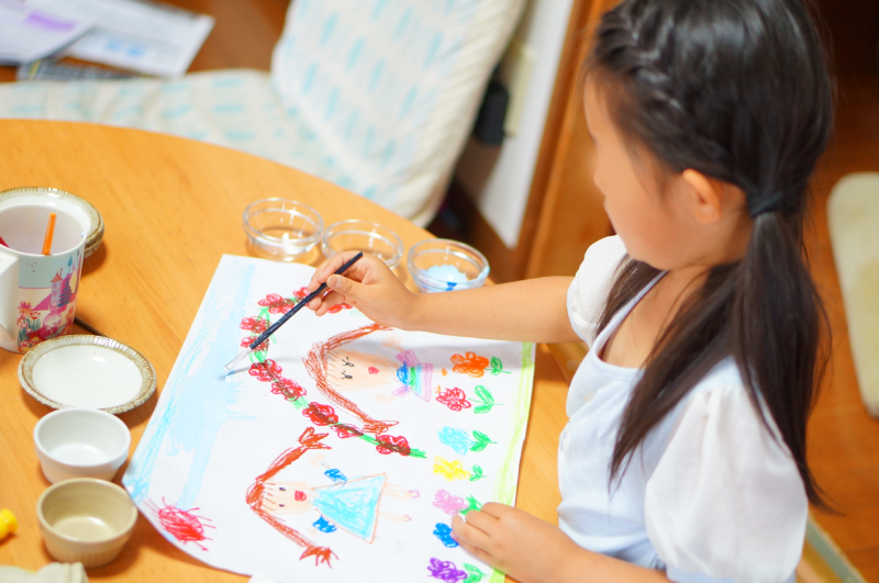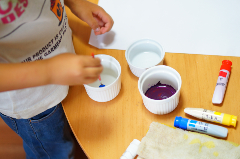 絵具お絵描き、色混ぜ遊び
